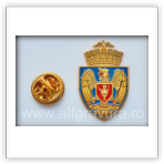 Producem la cererea Primariilor si Consiliilor Locale insigne metalice placate cu aur de 24 de carate cu heraldica comunei, orasului, municipiului, judetului, sub forma de scut triunghiular cu margini rotunjite timbrat cu o coroana murala cu 1, 3, 5, 7 turnuri crenelate. Insignele metalice suflate cu aur 24k pot fi vopsite cu email lichid in culorile stemelor, pot avea diferite dimensiuni solicitate de client. Insignele aurite cu stema judetului, stema municipiului, stema orasului, stema comunei, stema UAT, nu sunt importate din alte tari, ci le producem in Romania, cu tehnologia din dotarea atelierului nostru, fara a fi a fi necesare stante sau matrite. Avem termene scurte de executie, producem insigne-steme UAT aurite in orice cantitate, de la zeci la mii de insigne steme aurite.